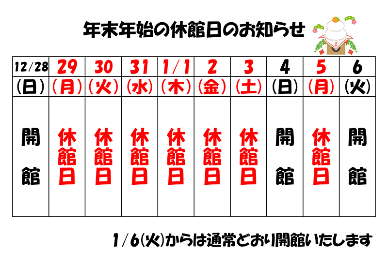 日 時:12月24日(水)午前10時~11時30分 *受付は11時までです。