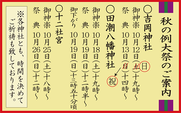 日 時:10月22日(水)午前10時~11時30分 *受付は11時までです。