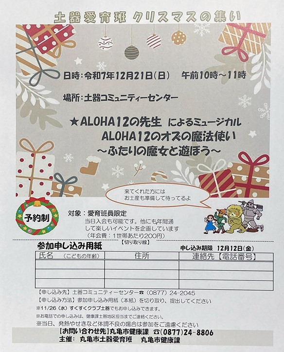 申し込み先:土器コミュニティセンター TEL:0877-24-2045